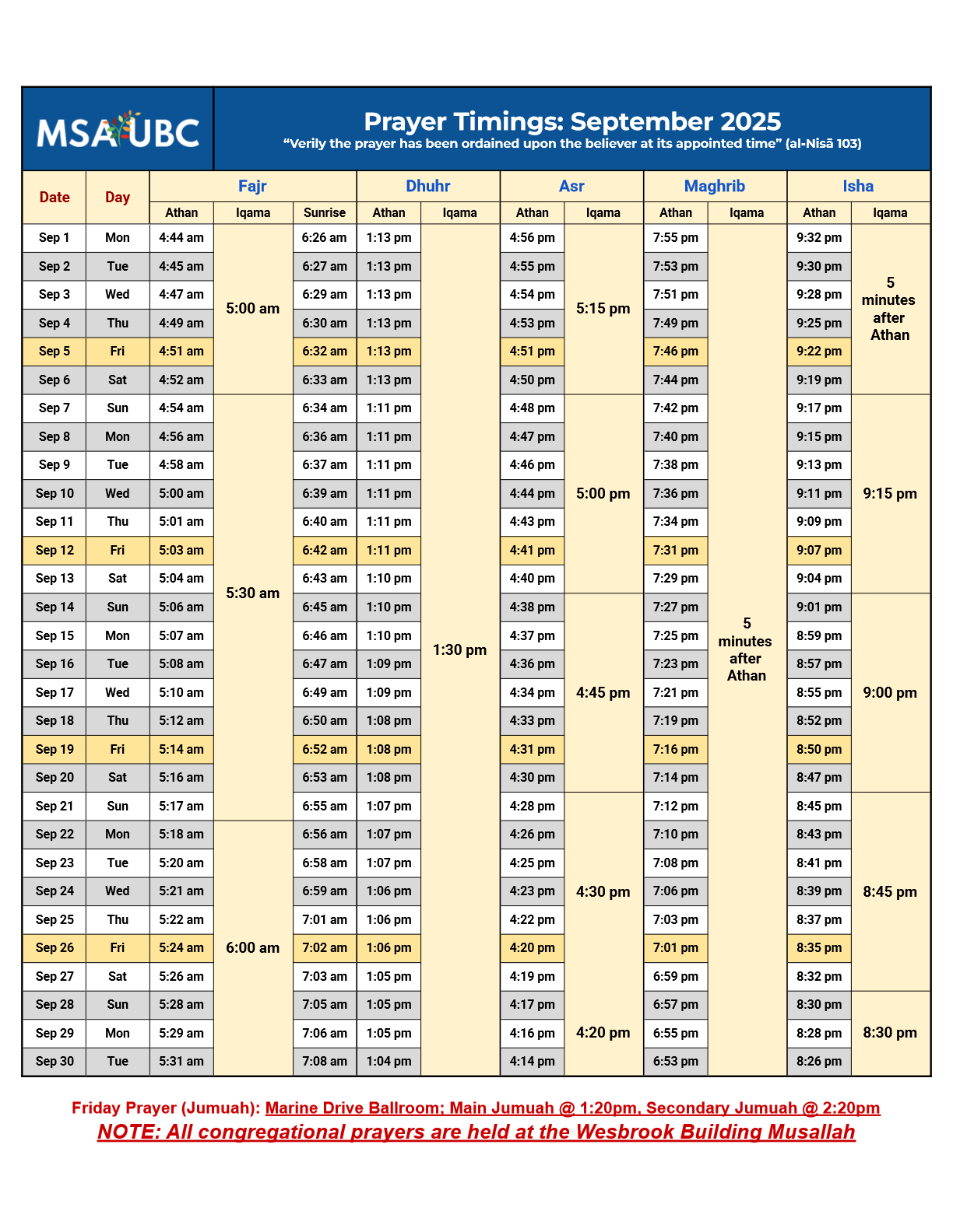 For information on Friday Prayers, please see the Jumu’ah Information Page.