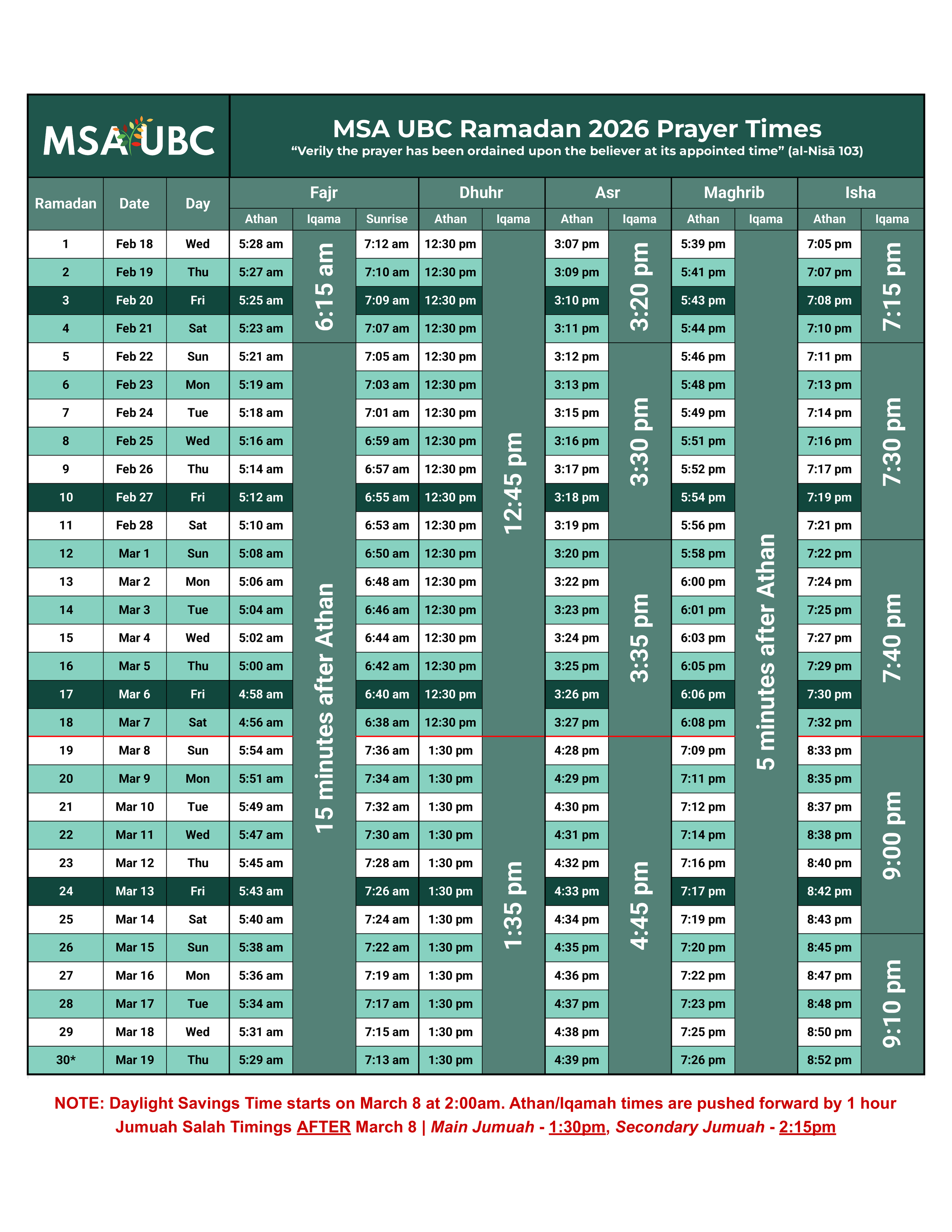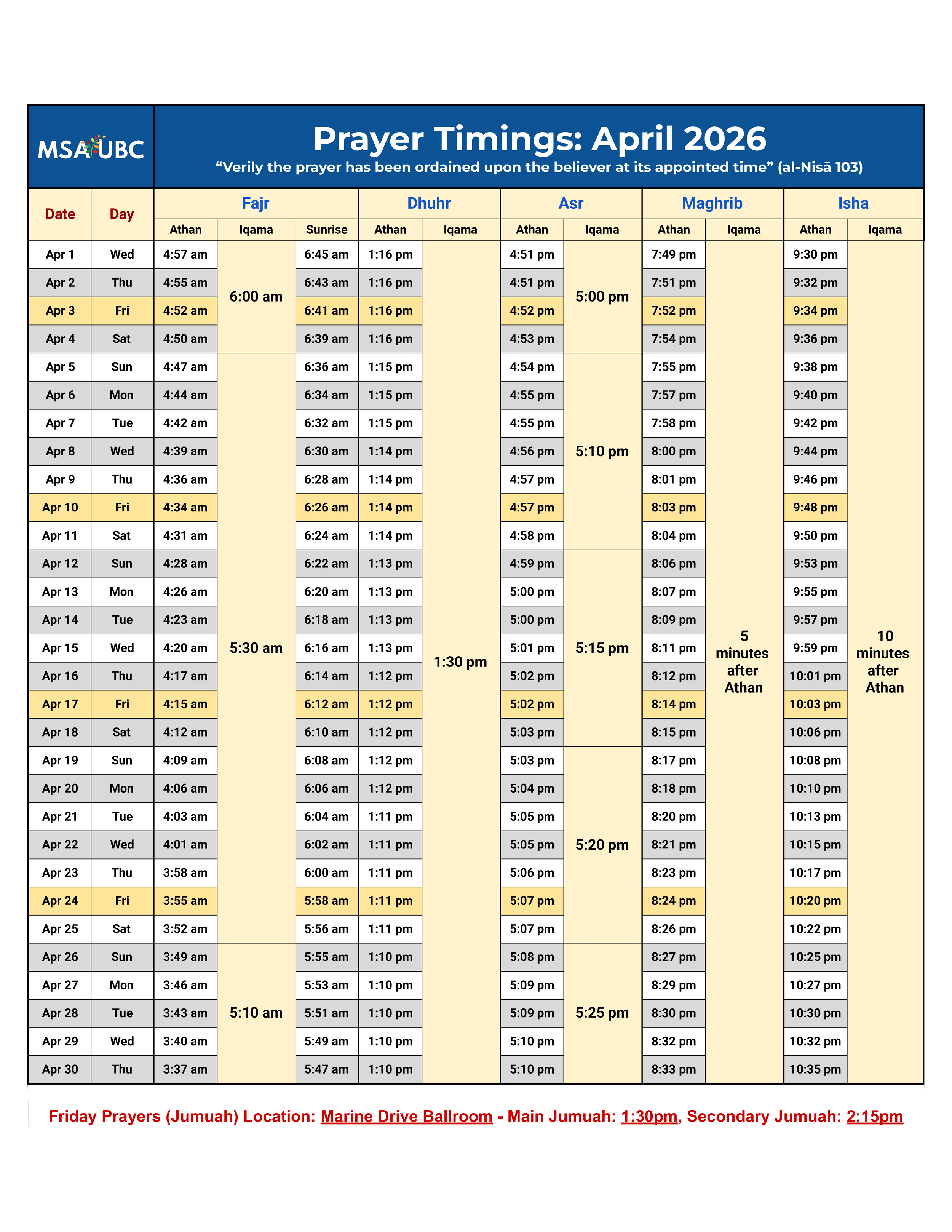 For information on Friday Prayers, please see the Jumu’ah Information Page.